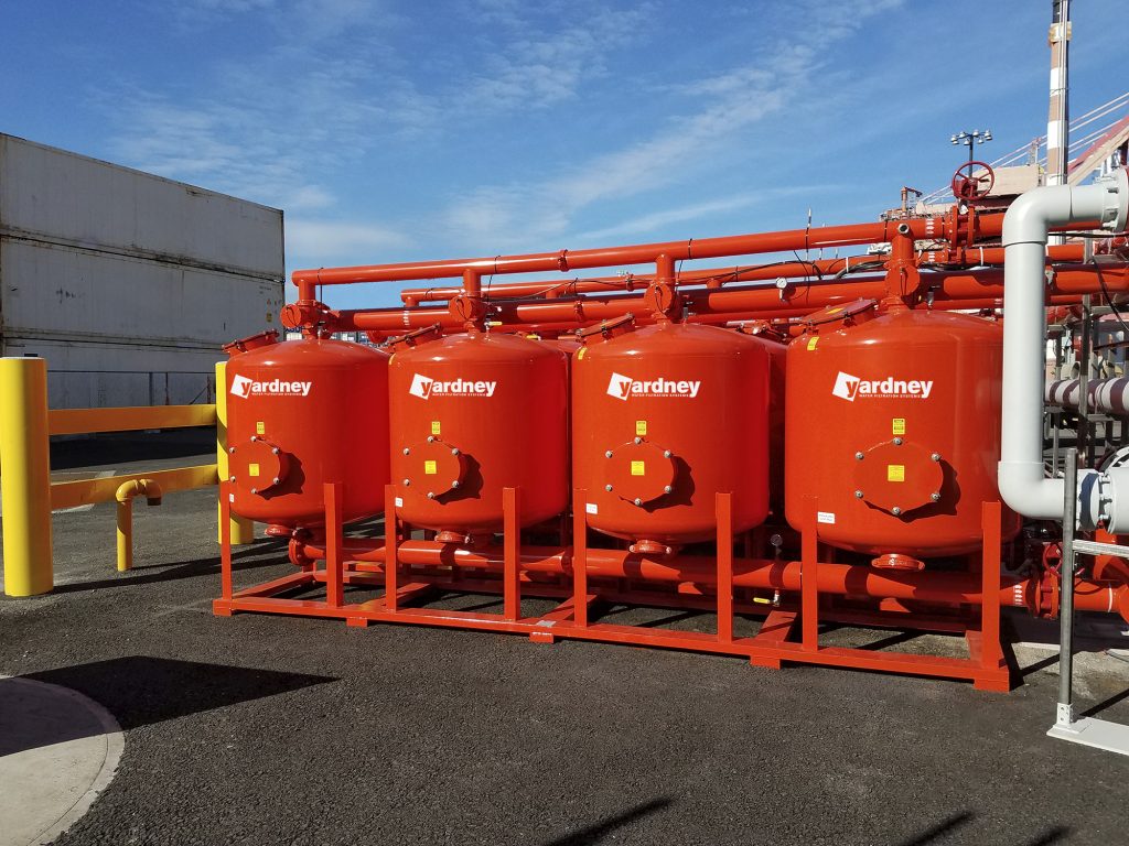 Yardney industrial filtration systems are shipped as a complete, finished, assembled and packaged unit. Each system is skid mounted with tanks, valves, manifolds, controller, tubing, electrical solenoids and removable underdrain assembled and ready for water source and power hookup.